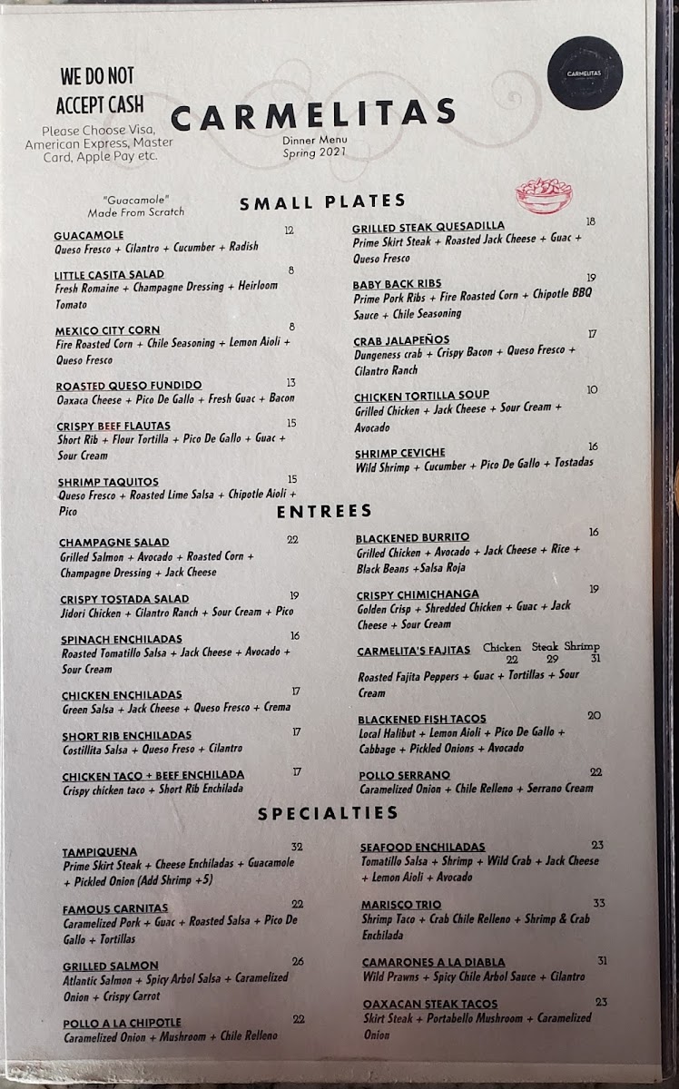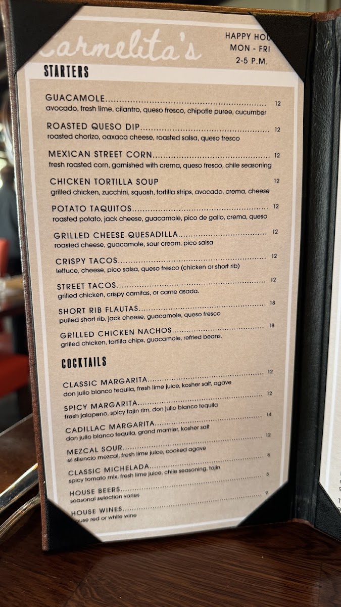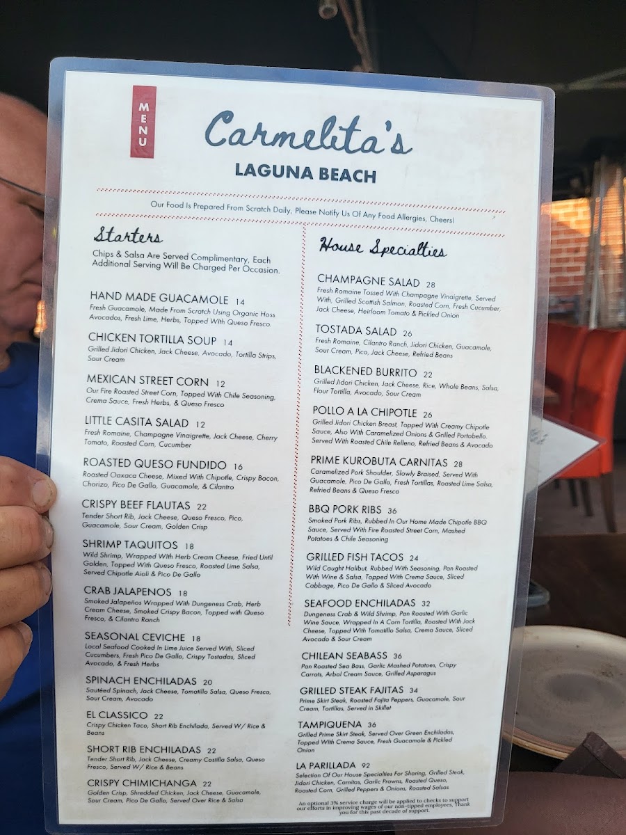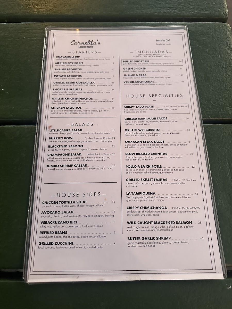 So whether you're in town for a special celebration, a casual meal with friends, or a romantic dinner, Carmelita's captures the essence of Mexican cuisine in a welcoming setting that will have you returning time and again. Don't miss out on this culinary gem during your next trip to Laguna Beach!