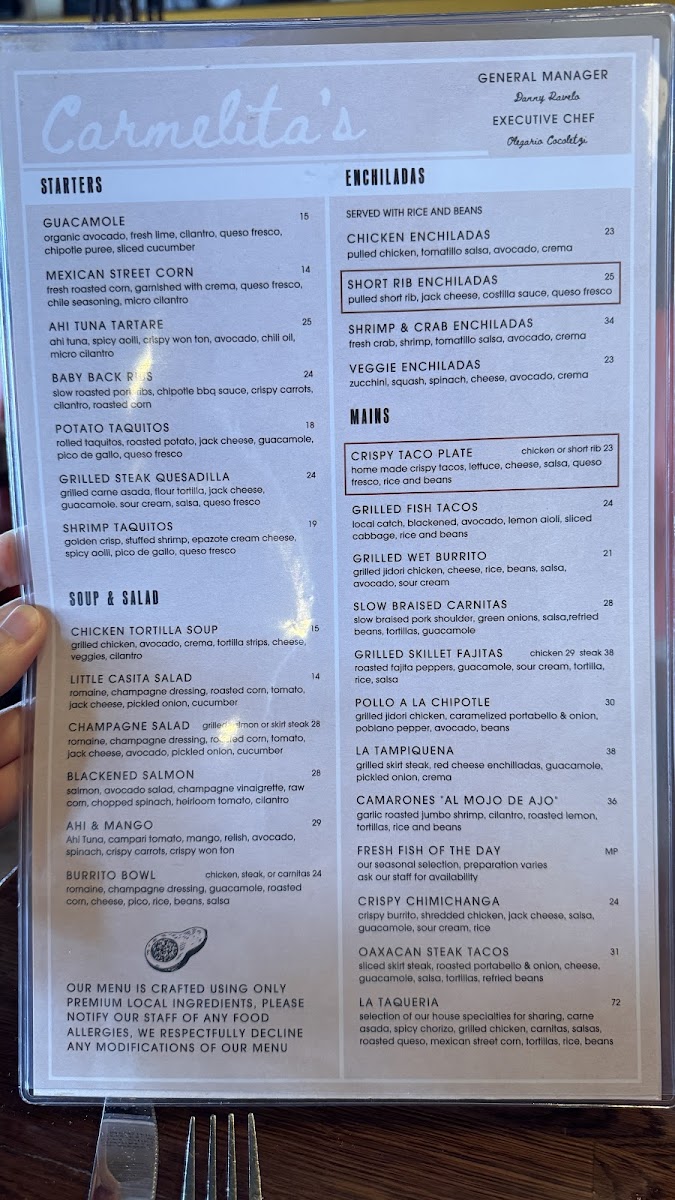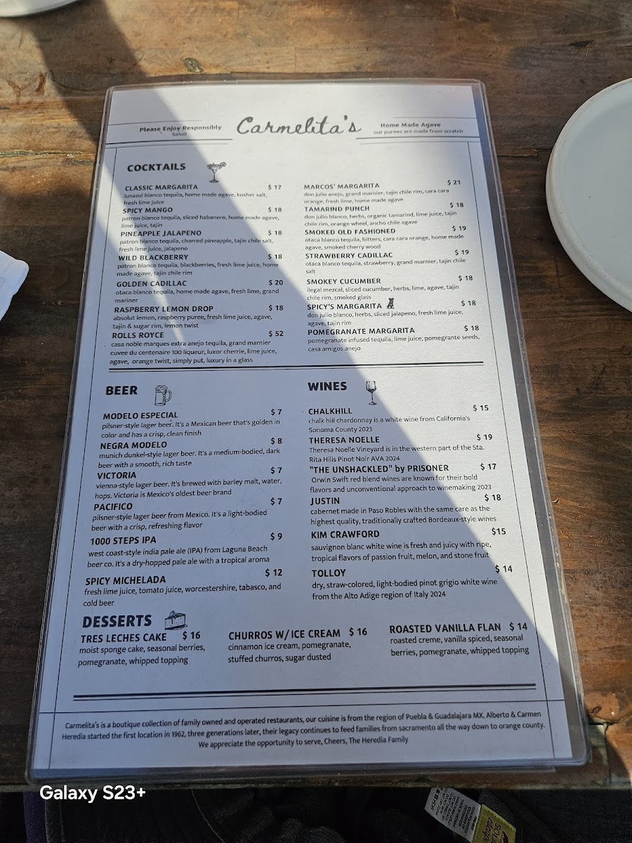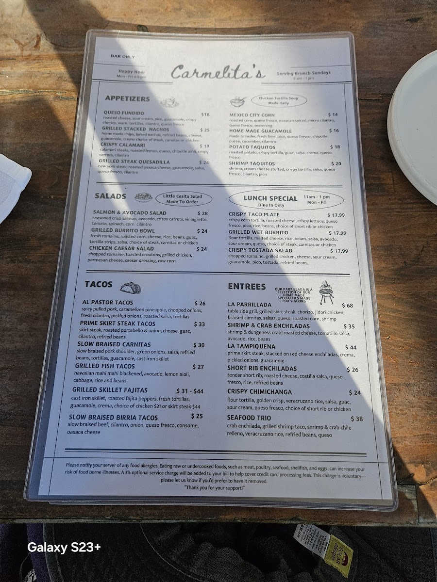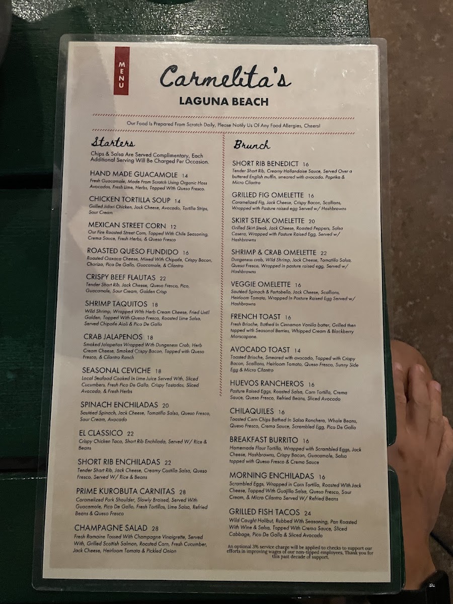 So whether you're in town for a special celebration, a casual meal with friends, or a romantic dinner, Carmelita's captures the essence of Mexican cuisine in a welcoming setting that will have you returning time and again. Don't miss out on this culinary gem during your next trip to Laguna Beach!